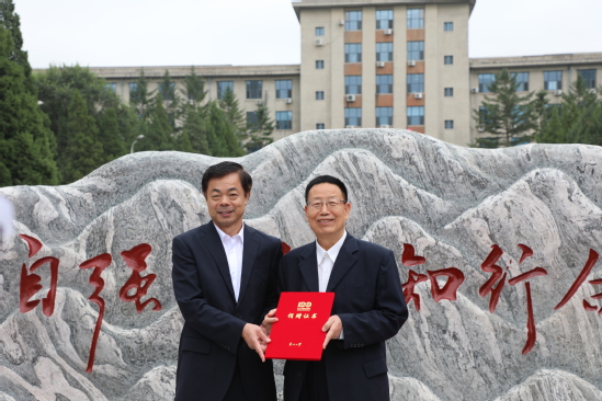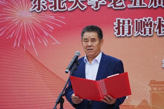 仪式上,熊晓梅、冯夏庭、老五届五位校友代表、在校教师代表、研究生代表以及本科生代表共同为校训石揭幕,冯夏庭为徐明教授颁发捐赠证书。老五届校友向母校赠送百年校庆文集《白山黑水壮我行》《东大老五届诗词选》和《东大老五届校友书画作品选》。