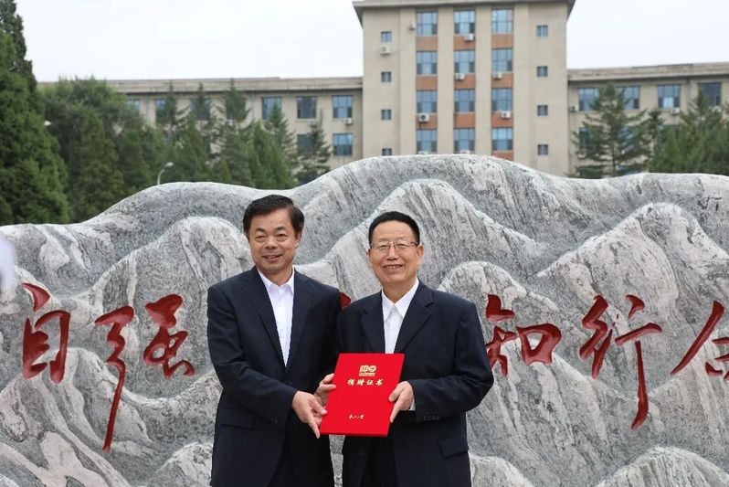 仪式上,校领导、老五届五位校友代表、在校教师代表、研究生代表以及本科生代表共同为校训石揭幕。校长冯夏庭为老五届校友代表徐明教授颁发捐赠证书。