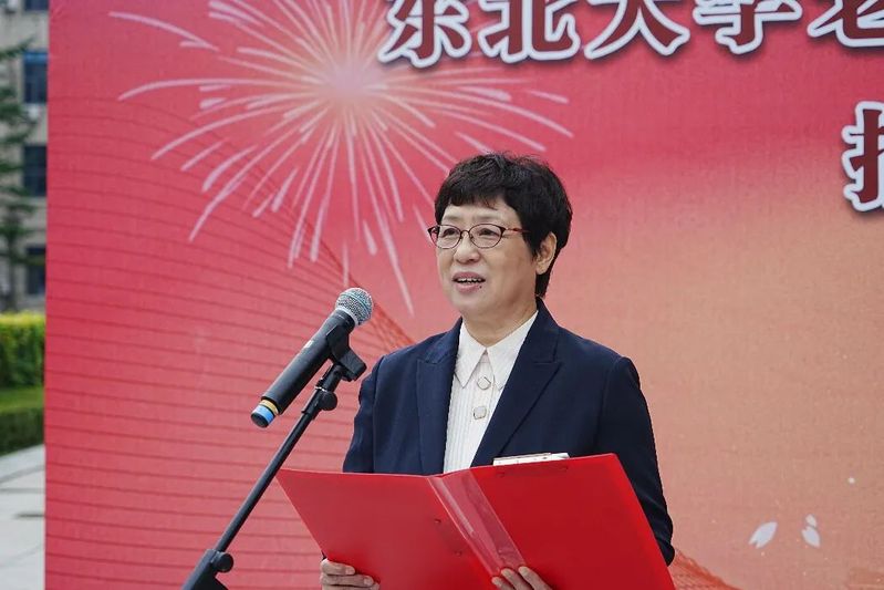 东北大学老五届校友捐赠校训石揭幕仪式在南湖校区信息学馆北广场举行。