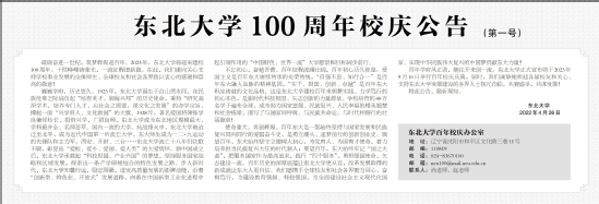 百年学府风正劲,继往开来创一流。东北大学正式宣布将于2023年9月16日举行百年校庆庆典,届时,我们诚挚地欢迎各届校友和关心、支持东北大学发展建设的各界人士拨冗莅临,共襄盛举,共谋发展!