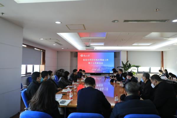 1月11日,东北大学百年校庆筹备工作第十七次推进会在主楼1401举行,副校长、校庆办公室主任孙雷出席会议,东北大学退休教师、新五届(1972—1976级)校友代表魏向前、杜尧君、王永祥、于化龙,学校党委宣传部、团委、校办、外联处、后勤管理处、档案馆、后勤服务中心、校庆办等相关部门负责人和工作人员参加会议。