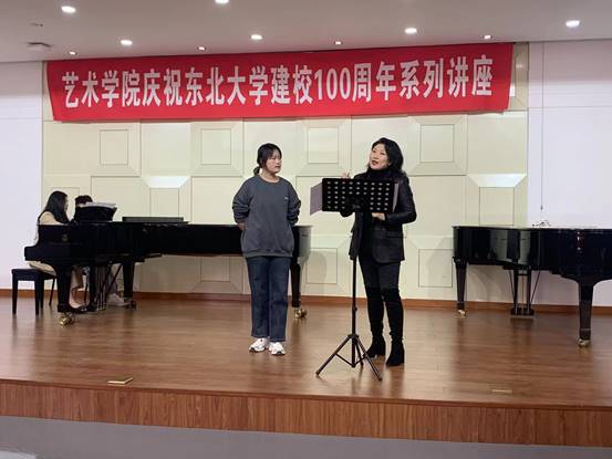 4月12日,艺术学院庆祝东北大学建校100周年系列讲座第三讲在双馨苑小音乐厅举行。青年女高音歌唱家、沈阳音乐学院音乐教育学院音乐教育系副主任贾坤副教授应邀讲学,艺术学院副院长霍楷出席活动,70余位师生参加活动。