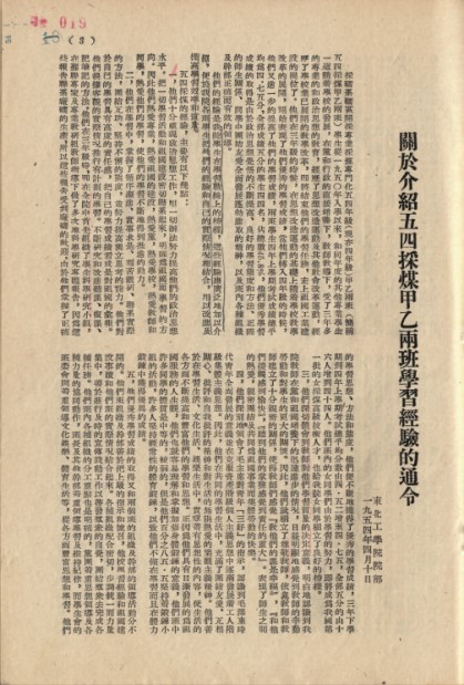 1954年4月,东北工学院召开了一个鲜有的表彰大会。全校师生席地而坐,共同听校长宣读了《关于介绍54采煤甲乙两班学习经验的通令》。有了强大的爱国精神支撑,政治、业务双过硬的54煤很快就成为了全校学习的先进典型。