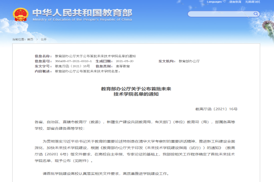 2021年5月,教育部公布首批未来技术学院名单,全国共有12所高校获批,东北大学未来技术学院成功入选。