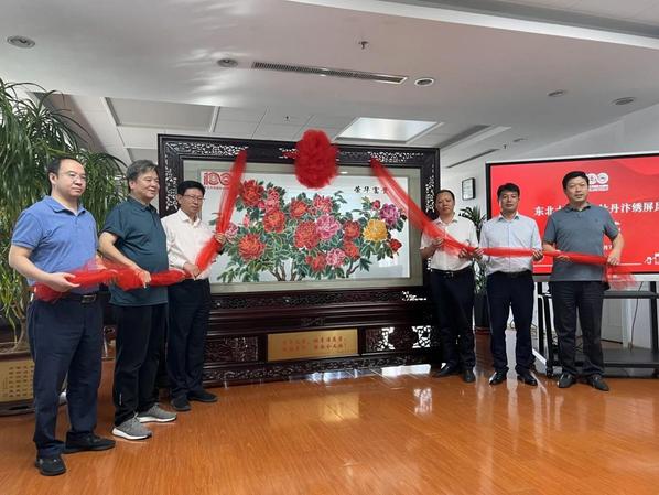 孙雷和李增光等嘉宾一同为手工牡丹汴绣屏风揭幕。孙雷为河南校友会和三门峡校友会代表颁发捐赠证书,诚挚邀请各位校友出席百年校庆系列活动,共同为东北大学新百年建言献策,助力母校跃升发展。