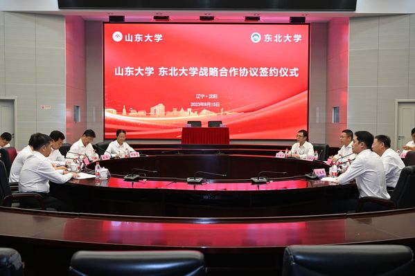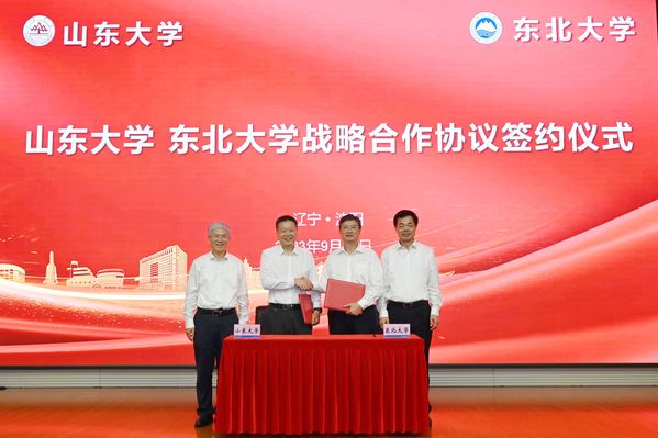 会上,芦延华和徐峰代表双方共同签署山东大学—东北大学战略合作协议。双方将秉承“优势互补、共谋发展、互惠互利、实现双赢”的原则,在学科建设、师资队伍、人才培养、科学研究、资源共享等方面开展更加深入全面的合作,共同推进高质量发展,为服务国家战略、行业产业升级以及区域经济社会发展作出更大贡献。
