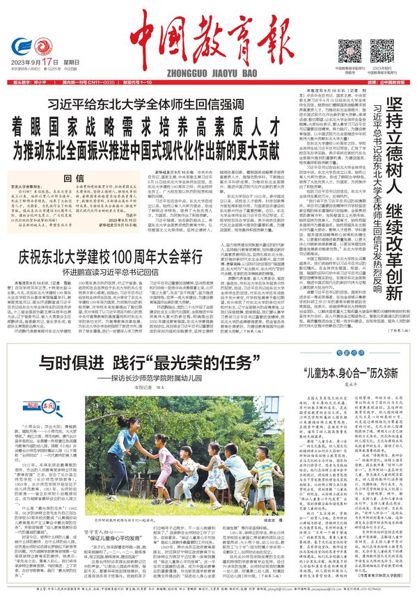 本报沈阳9月16日讯(记者 刘玉)中共中央总书记、国家主席、中央军委主席习近平9月15日给东北大学全体师生回信,鼓励他们着眼国家战略需求培养高素质人才,为推动东北全面振兴、推进中国式现代化作出新的更大贡献。谆谆话语、殷切期望,让东北大学全体师生备受鼓舞。大家纷纷表示,要认真学习习近平总书记重要回信精神,努力践行,为建设教育强国、以中国式现代化全面推进中华民族伟大复兴贡献东北大学力量!