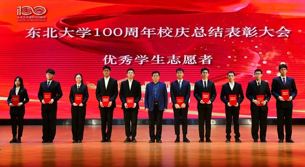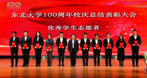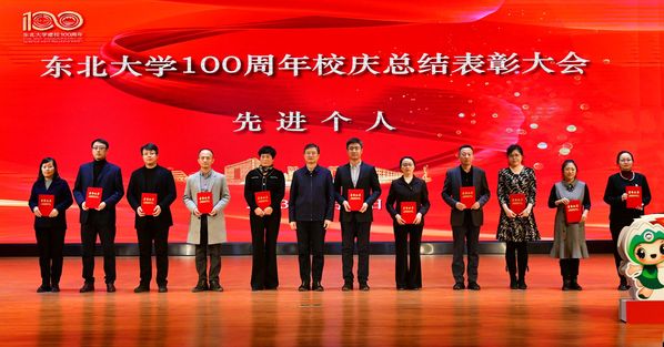 校党委副书记王玉琦宣读《关于表彰东北大学百年校庆工作先进集体和先进个人的决定》,党委宣传部等5个集体获得“特别贡献集体”奖,文法学院等22个部门获得“百年校庆工作先进集体”奖,于天彪等298名个人获得“百年校庆工作先进个人”奖,叶体民等332人获得“百年校庆工作优秀学生志愿者”奖和“百年校庆工作优秀学生演员”奖。校领导为获奖集体和个人代表颁发了奖牌和荣誉证书。